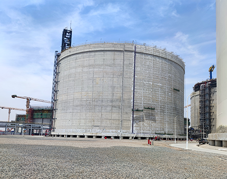 北燃天津南港LNG應(yīng)急儲備項目的薄膜型LNG儲罐是目前全球最大的陸上LNG薄膜罐,是為北京市提供安保用氣、加速京津冀一體化的重點項目,我司承攬此項目二、三階段共計六臺薄膜罐的防潮層施工工作
